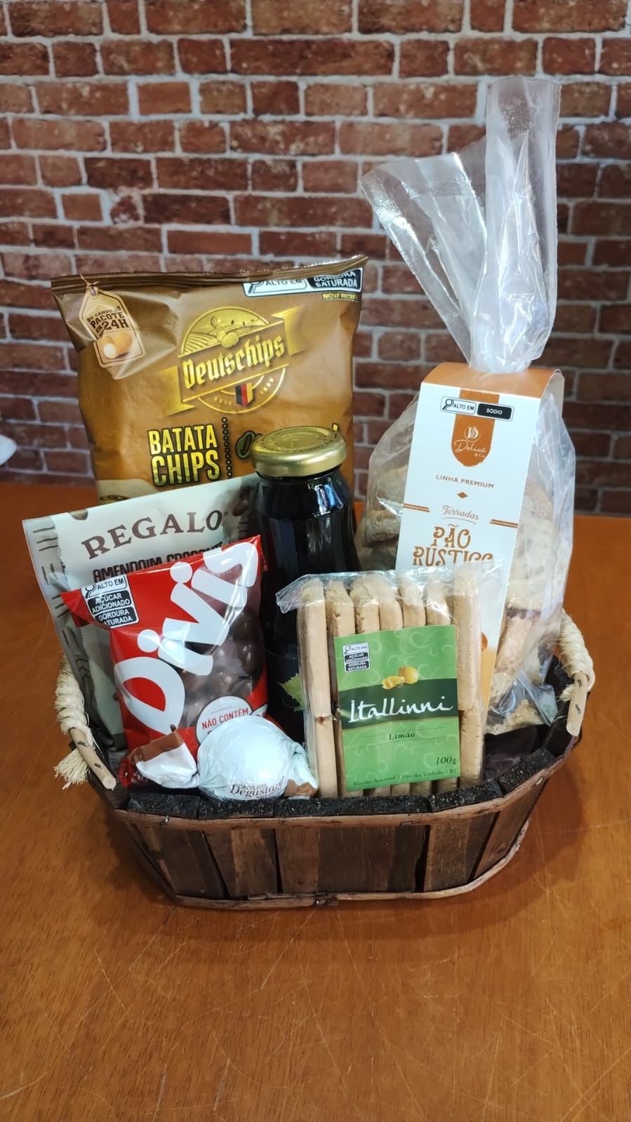 Vai embalado com celofane e laço. Na falta de algum produto será substituído por outro semelhante ou de igual valor.